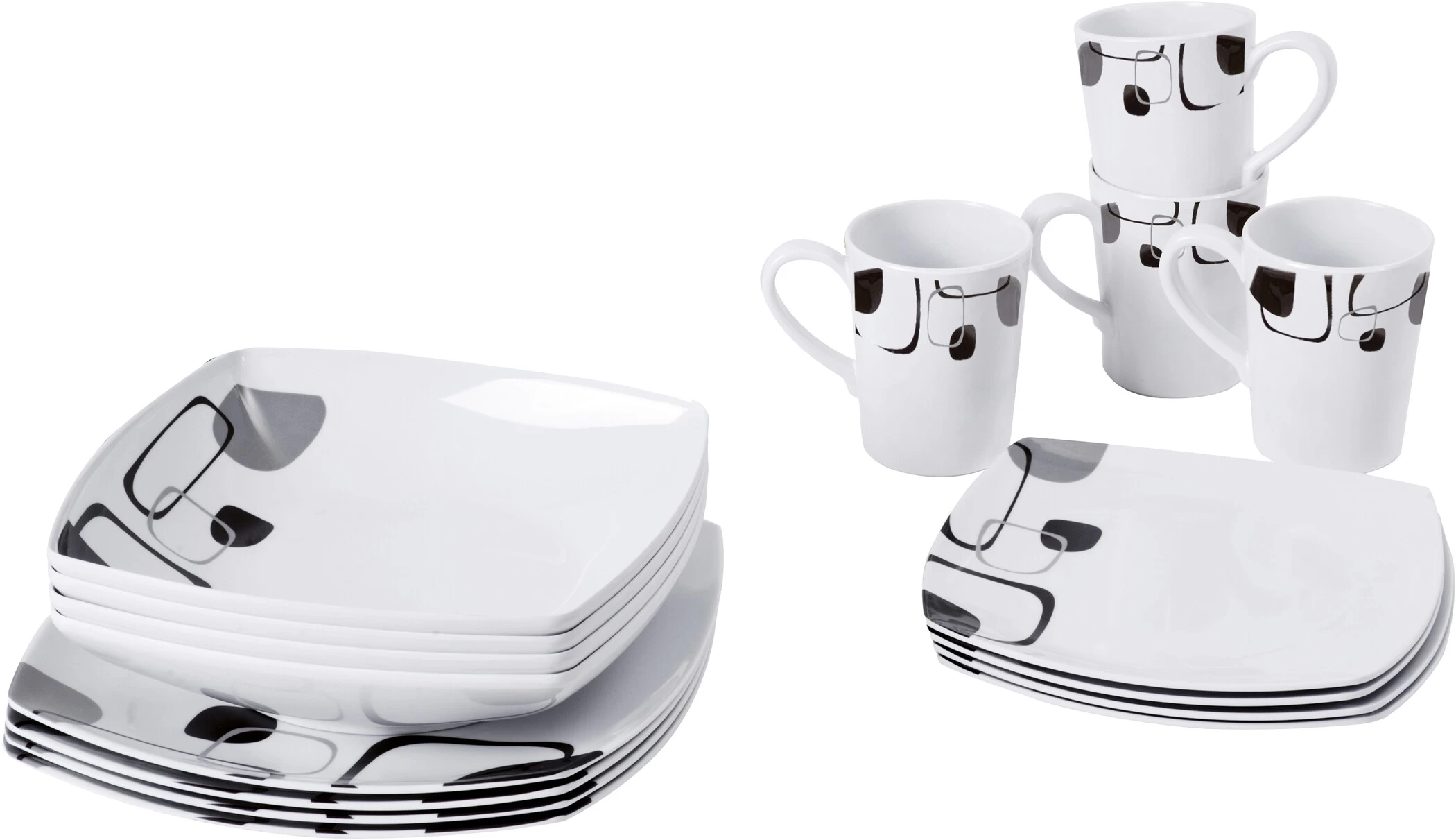 16-delige servies set. Alle onderdelen met anti-slip systeem.