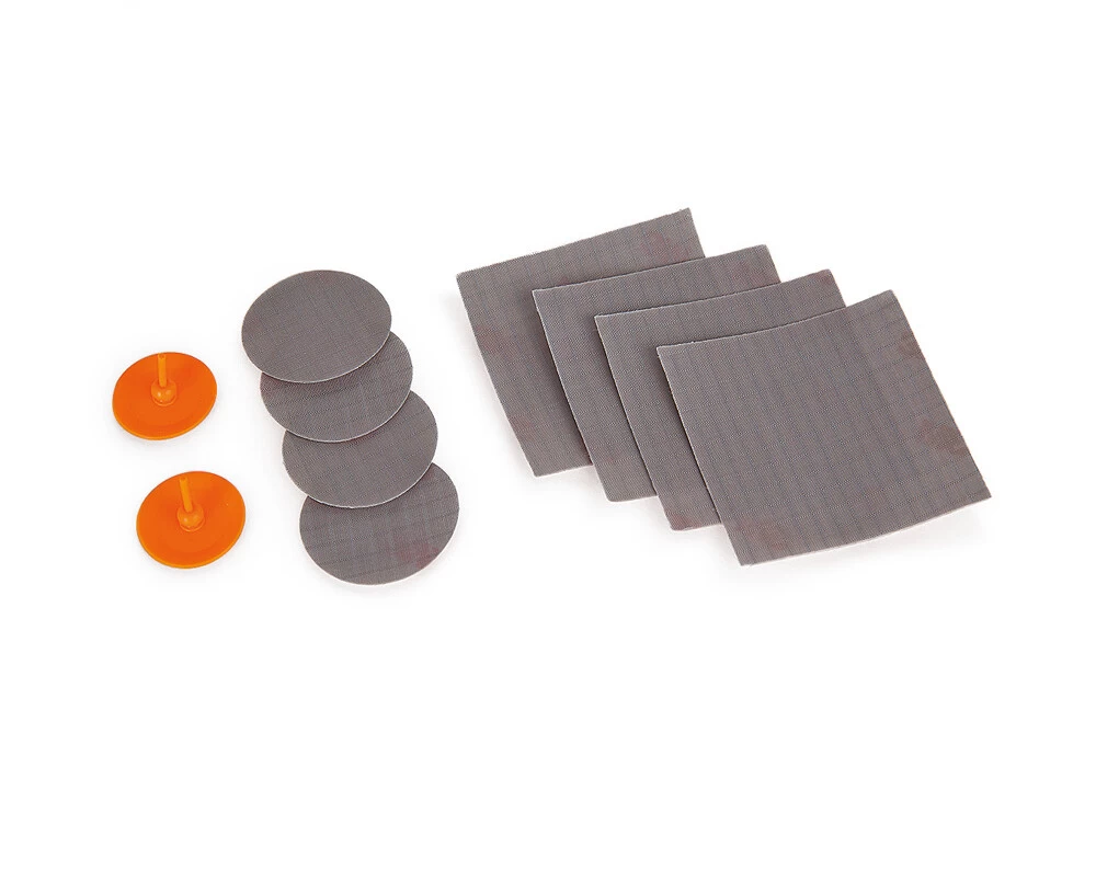 De eenvoudige “peel and stick” mattenreparatieset is ontworpen voor Sea to Summit matten en houdt stevig en betrouwbaar vast aan het oppervlaktemateriaal van de matten.